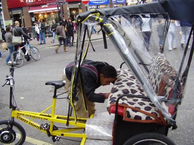 Am Leicester Square stehen auch viele Rikshas (?) rum, mit denen man neuerdings durch die Stadt heizt.